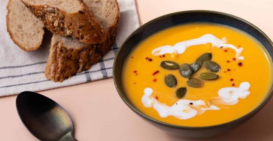 Draußen pfeift der nasskalte Wind die bunten Blätter in schillernden Farben umher. Schön anzusehen, aber drinnen im Warmen ist es dann doch etwas gemütlicher. Zum Aufwärmen haben wir euch das Rezept für eine leckere Kürbissuppe ...