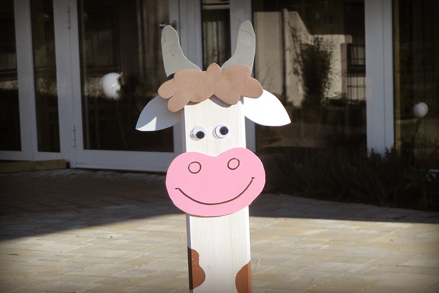 So ein Zaun muss nicht immer nur eine begrenzende Wirkung haben Im Gegenteil: Eine Zaunlatte kann man in allerlei schöne Dinge verwandeln und so zu einem „Willkommens-Schild“ umfunktionieren. Unser heutiges Beispiel ist eine Kuh. Einige Kinder konnten sie bei uns schon basteln, jetzt gibt’s die Anleitung auch für Zuhause.