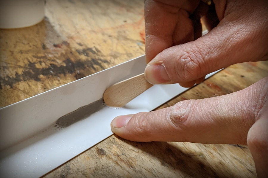 - Das Silikon langsam und gleichmäßig mit Hilfe der Silikonspritze auftragen.