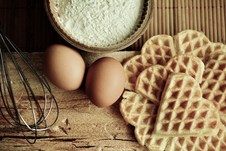 - Die Teigmasse anschl. Portionsweise einfach im heißen Waffeleisen backen.